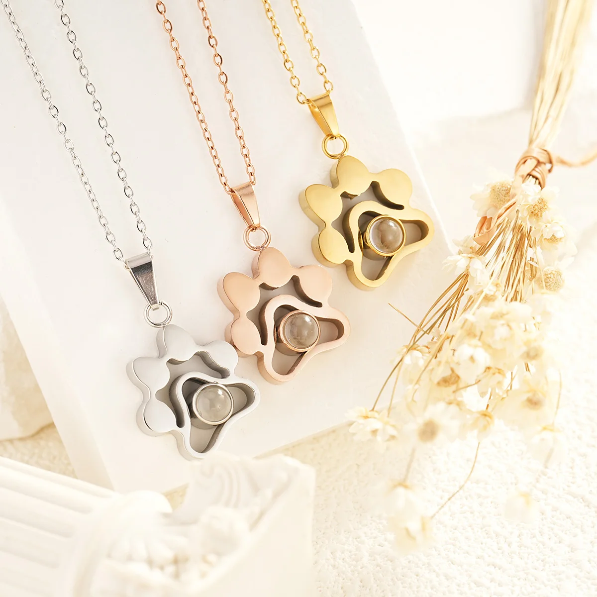 Custom Pet Photo Projection Necklace Stainless Steel Dog Cat Paw Photo Projection Pendant Memory Jewelry Gift Christmas Gifts