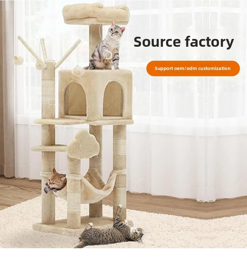 Multi Cat Climbing Frame with Integrated Litter Box Space Saving Kitten Shelf and Toy